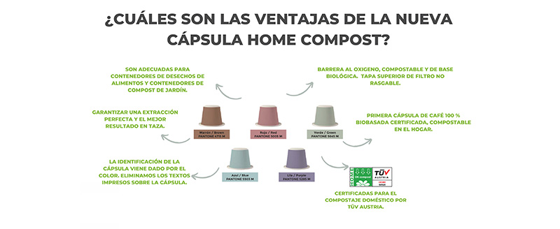 The capsules are made from bio-based materials (vegetable oils and cellulose) and are home compostable — certified “OK compost HOME” and “OK biobased 4 stars” by TÜV AUSTRIA.